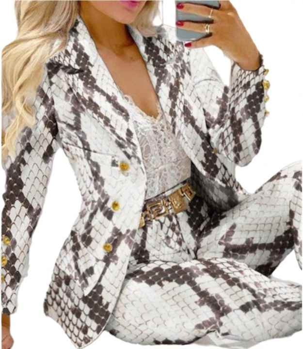 C8035 Latest Design Long Sleeve Ladies Formal Suits Womens Blazer And Pants Set Printing Womens Suits & Tuxedo